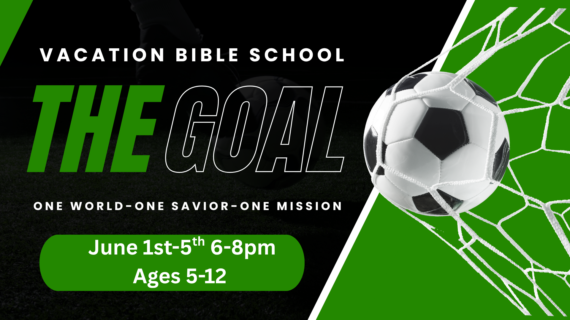 Get ready to hit the field for an unforgettable week of international excitement at The Goal—our 2026 World Cup-themed Vacation Bible School! Each evening, kids ages 5–12 will experience the thrill of the world’s favorite game through high-energy sports, creative crafts, engaging Bible stories, and tasty global treats—all designed to help them connect with God and His mission for the world.